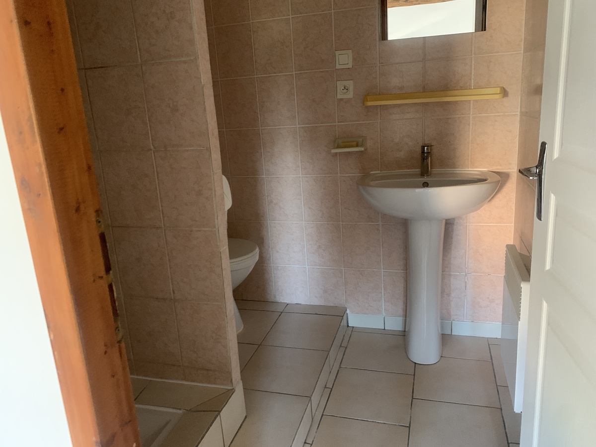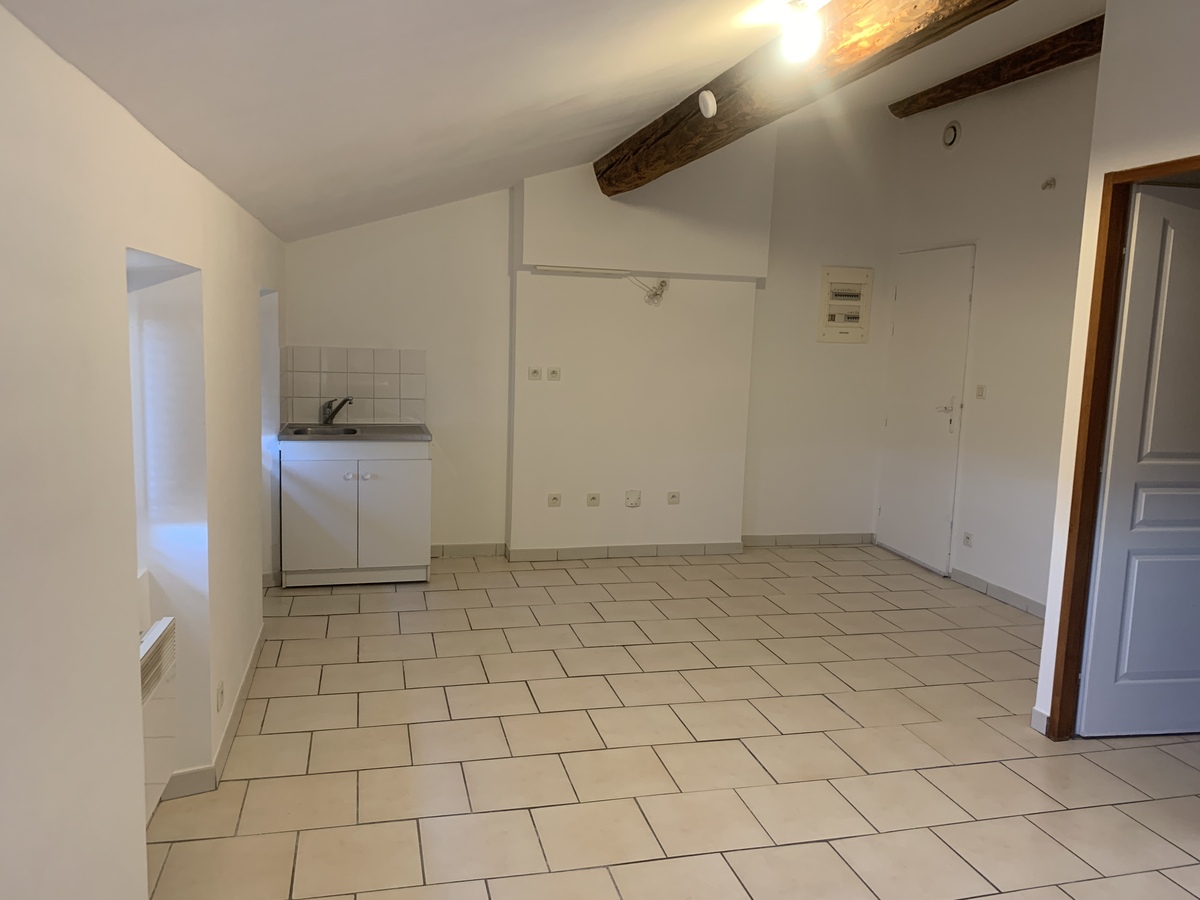 Pièce principale avec coin cuisine et meuble évier, une chambre avec velux, salle d'eau/wc. DPE E/C , disponible immédiatement.