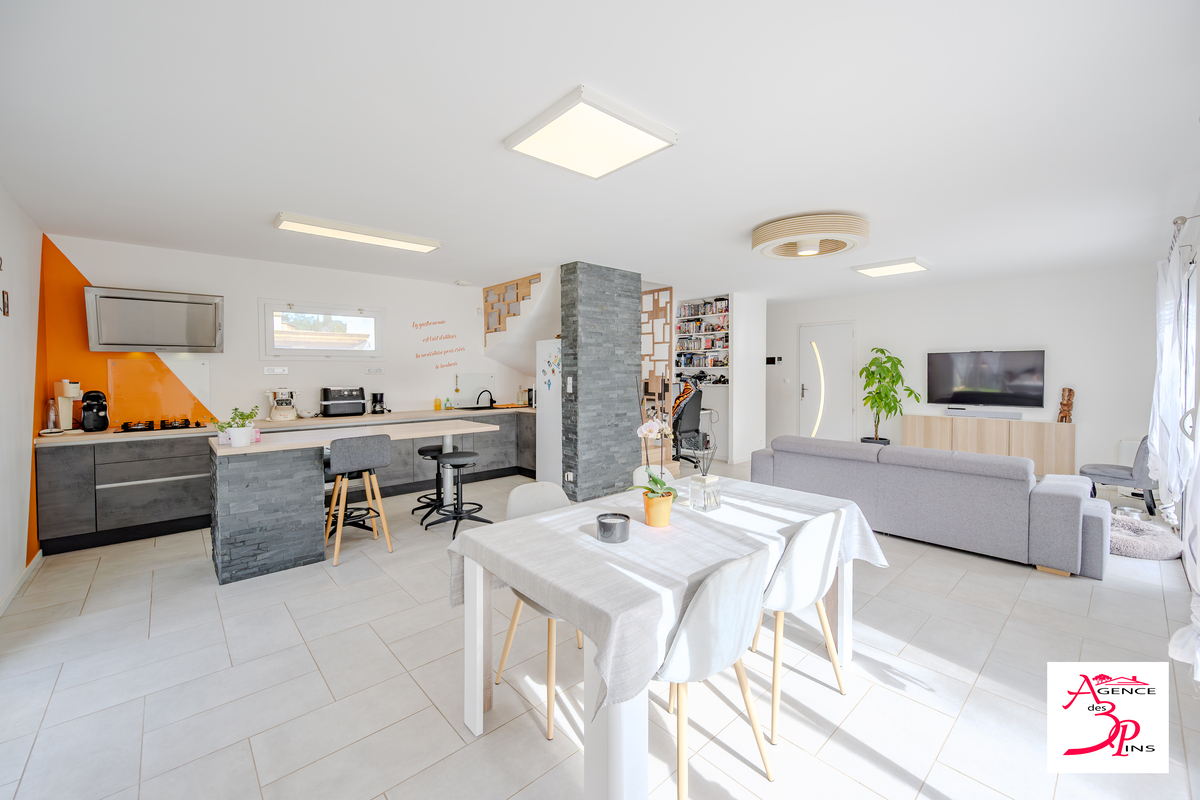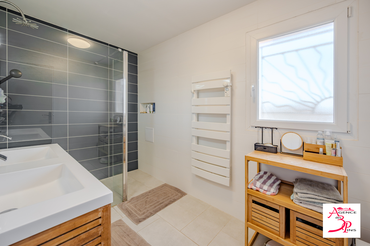 Au rez-de-chaussée, vous découvrirez une pièce de vie lumineuse avec cuisine ouverte, une buanderie, un WC indépendant ainsi qu’un espace en attente permettant la création d’une chambre de plain-pied selon vos besoins.