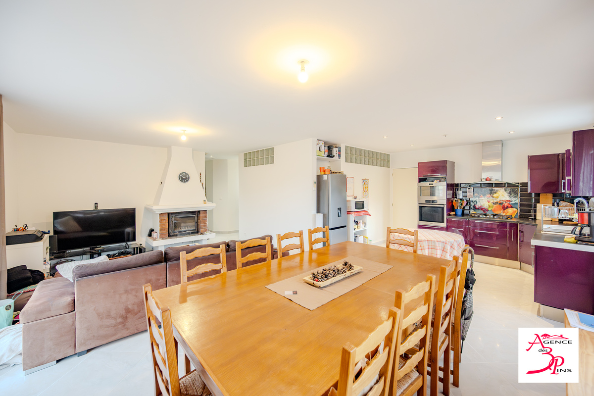 L’entrée s’ouvre sur une spacieuse pièce de vie lumineuse, comprenant une cuisine ouverte et donnant directement accès à l’extérieur.