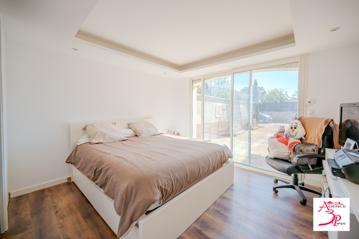 Au rez-de-jardin, une première suite de plain-pied dispose de sa propre salle d’eau.